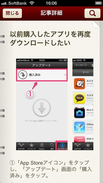 使い方ガイドfor iPhoneは、「最近見たページ」に閲覧履歴が表示され、あやふやな理解の事柄について何度も確認できるので便利な一方、お気に入り機能がないので、自分が重要だと思った情報をクリッピングできないのがやや不便だと感じました。このほか、iPhoneの使い方がわかるアプリには使い方 for iPhone -写真つき詳しい説明&裏技がたくさん!があります。